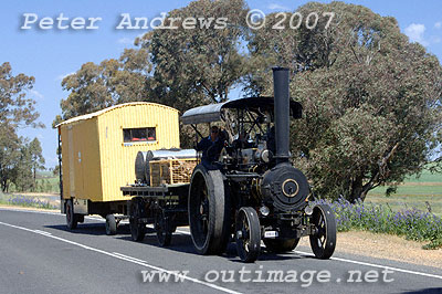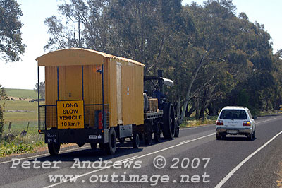 passing steam tractor on the Lachlan Valley Way between Cowra