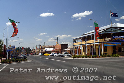 main street of Boorowa NSW Australia with banner flags flying after